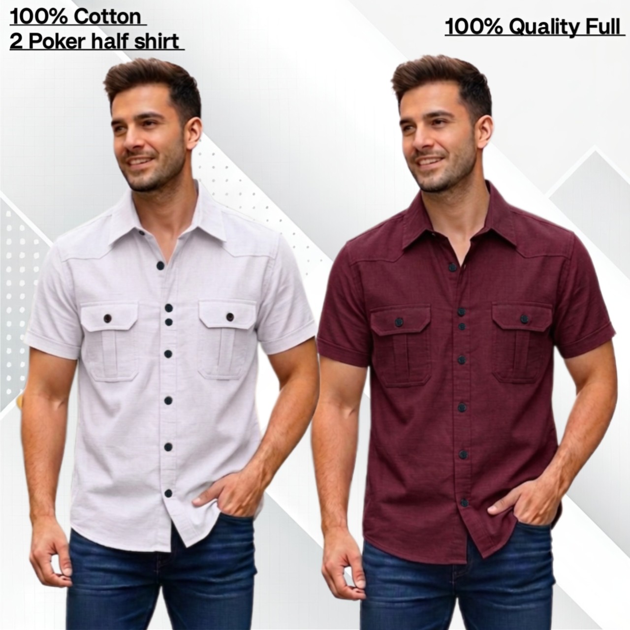 2pcs Cotton 2 poket half shirt
