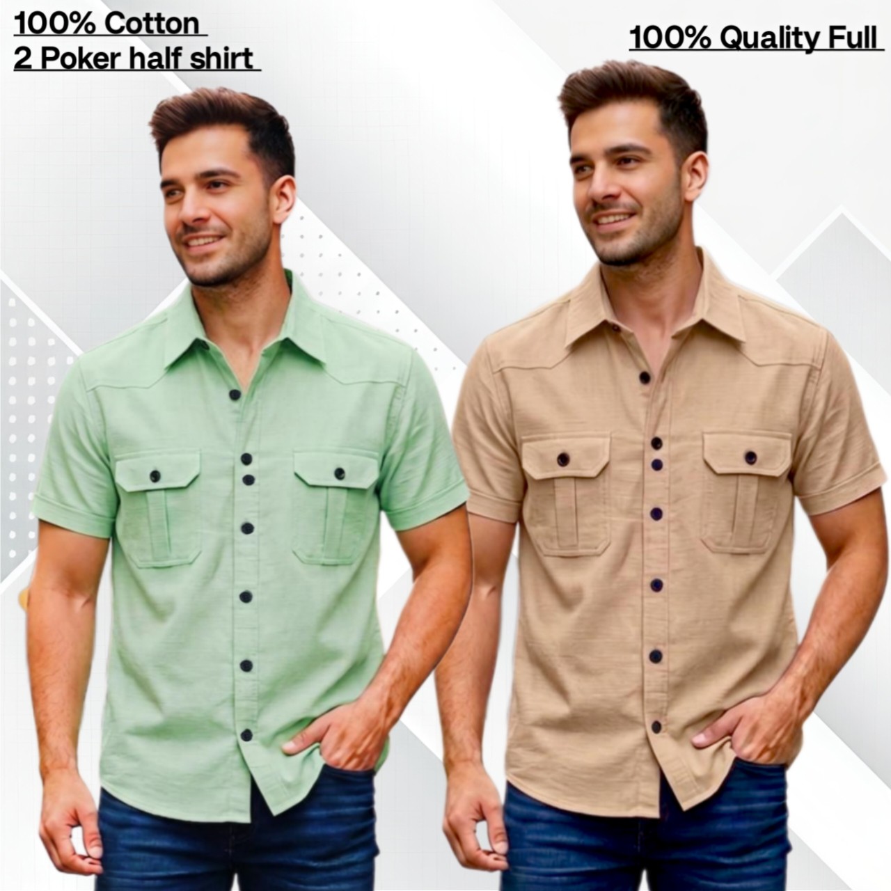 2pcs Cotton 2 poket half shirt