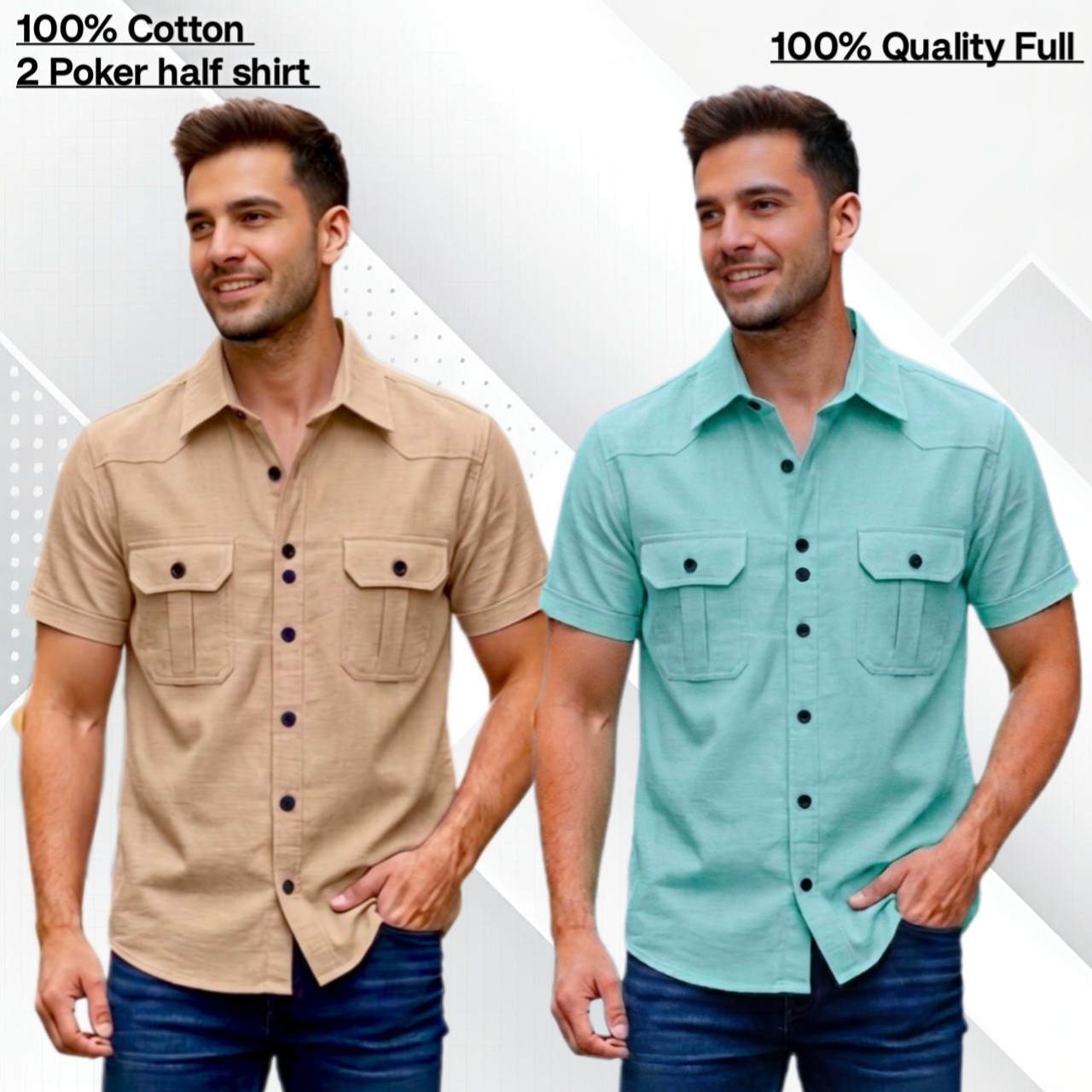 2pcs Cotton 2 poket half shirt