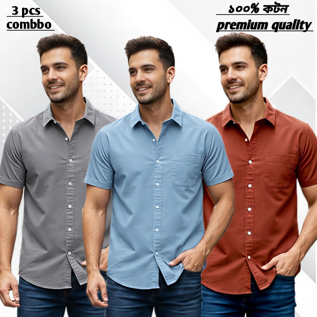 3 pcs Premium quality half sleeve shirt