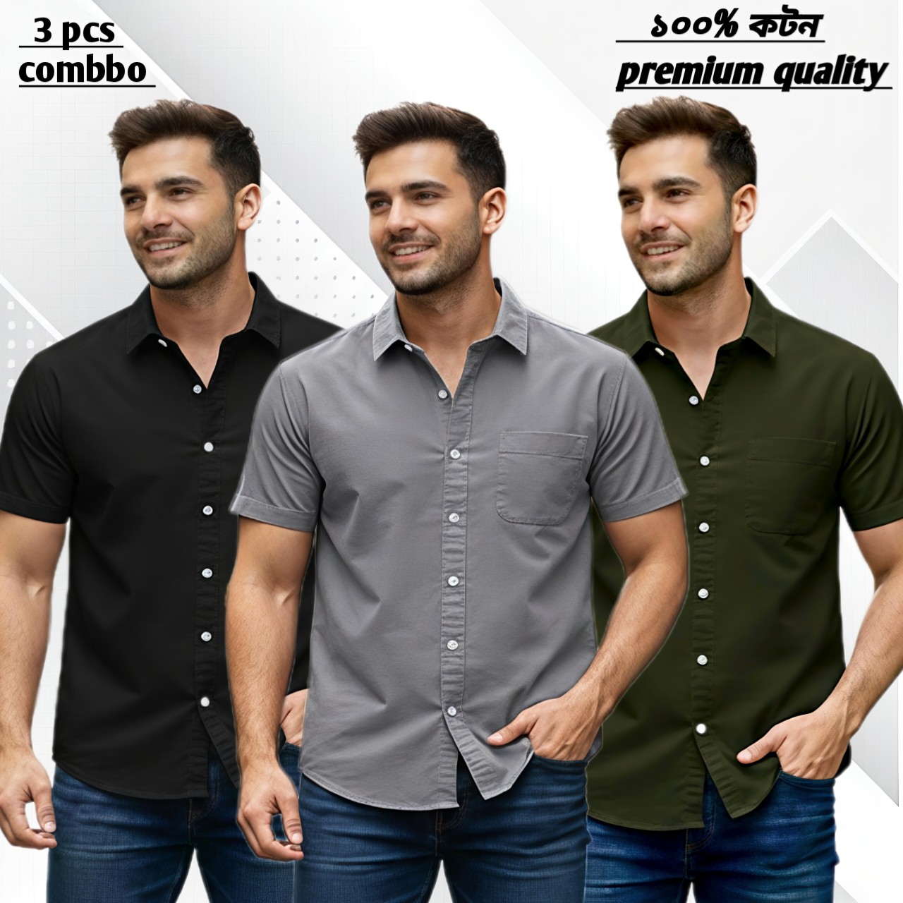 3 pcs Premium quality half sleeve shirt