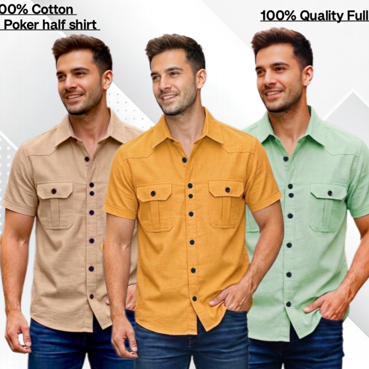 3pcs Cotton 2 poket half shirt